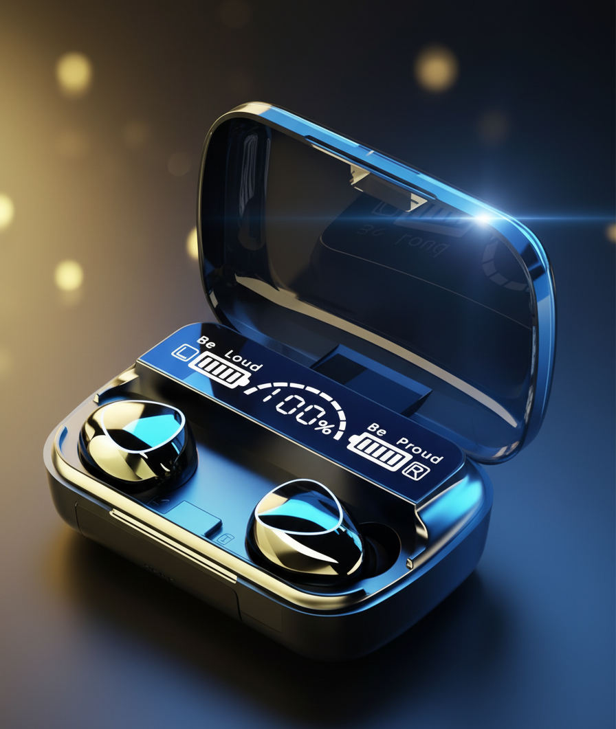 - Power LED digital display, charging compartment and power for left and right earbuds in a snap